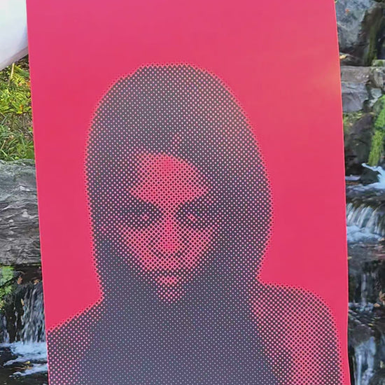 Our LKMS screenprint commemorates an iconic moment in Hip Hop history. Lil' Kim's mug shot from when she was arrested in 1996. The halftone effect against the bright red makes it perfect for a wall in any room.